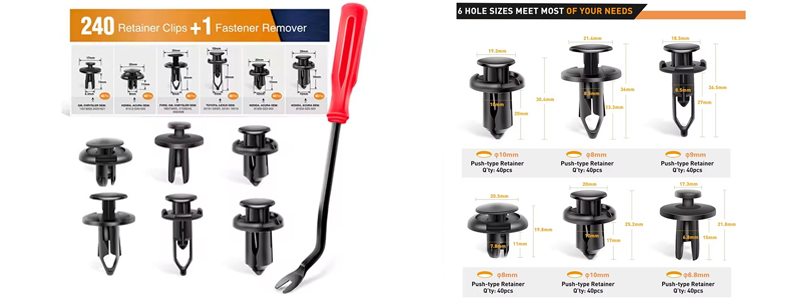 Ilova: Masalan, g'ildiraklar, plastik ovoz izolyatsiya panellari, shassi himoya panellari va boshqalar haydash paytida tebranish yoki to'qnashuvlar tufayli bu qismlar ekin yoki to'qnashuvlar tufayli to'lanishi mumkinligini ta'minlaydi.
